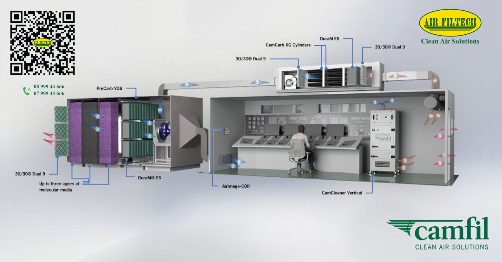 - Máy Lọc không khí tuần hoàn trong phòng (Recirculating Unit): CamCleaner Vertical duy trì nồng độ khí ăn mòn ở mức an toàn trong phòng điều khiển.
